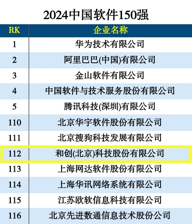 2024年10月24日,在中國科學(xué)院旗下權(quán)威媒體《互聯(lián)網(wǎng)周刊》與德本咨詢等機構(gòu)聯(lián)合發(fā)布的“2024年中國軟件150強”榜單中,和創(chuàng)科技榮幸地被評選為中國軟件行業(yè)的杰出企業(yè)。該榜單依據(jù)嚴(yán)謹?shù)脑u估體系,從技術(shù)實力、市場地位、服務(wù)質(zhì)量、發(fā)展?jié)摿Α⑸鐣绊憽⑿袠I(yè)貢獻及管理效率等多個維度進行評定,確保評價的公正性和權(quán)威性。這一殊榮不僅是對和創(chuàng)科技在軟件開發(fā)和技術(shù)創(chuàng)新領(lǐng)域的認可,也標(biāo)志著公司在數(shù)字化智能云服務(wù)領(lǐng)域的持續(xù)進步。